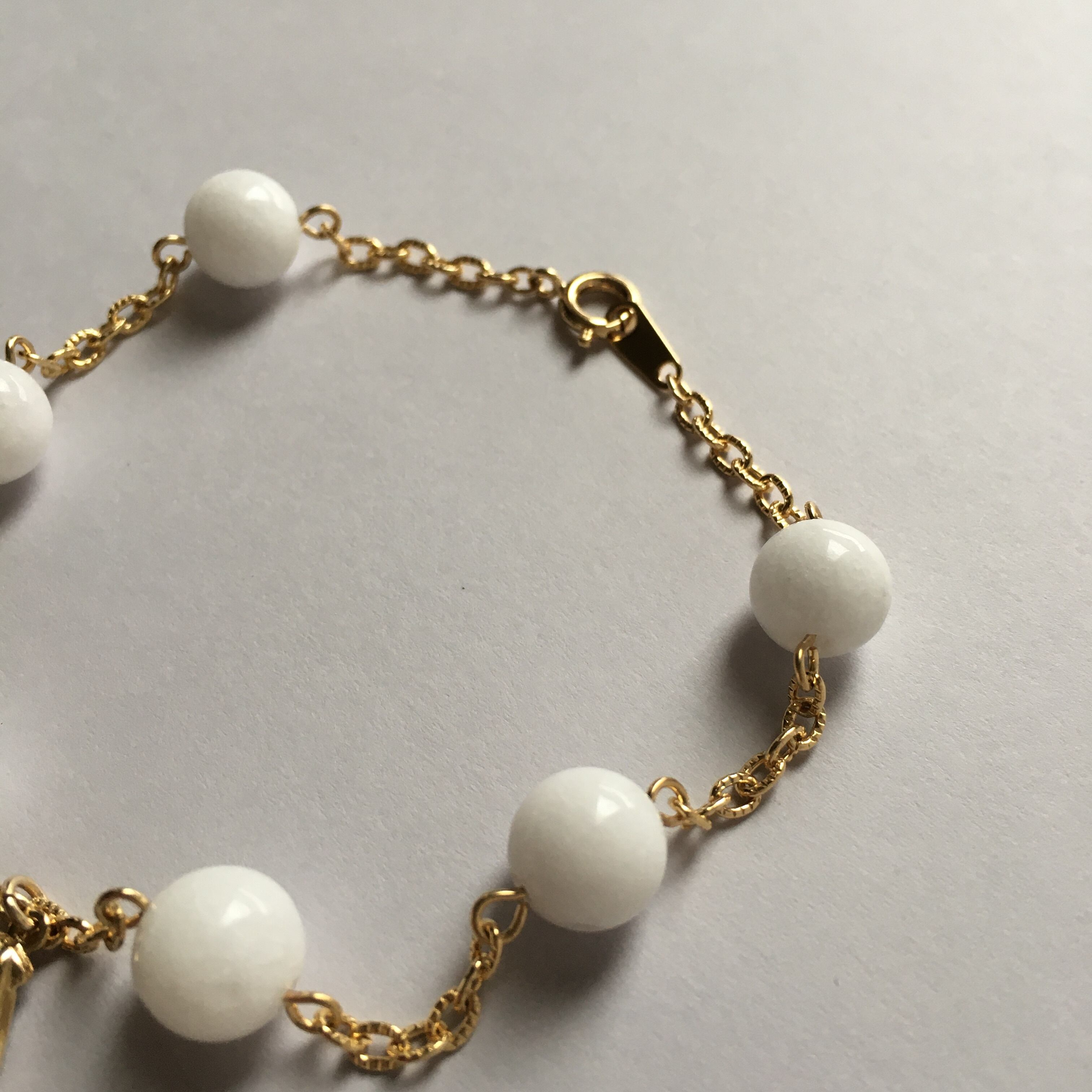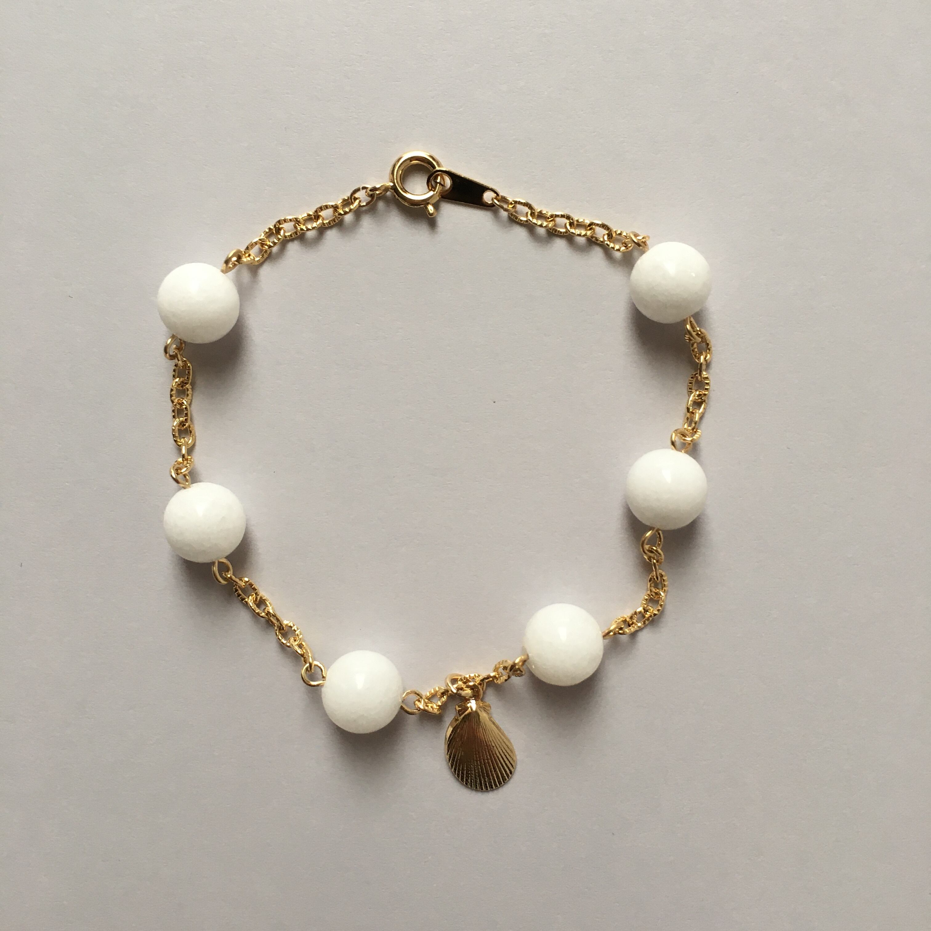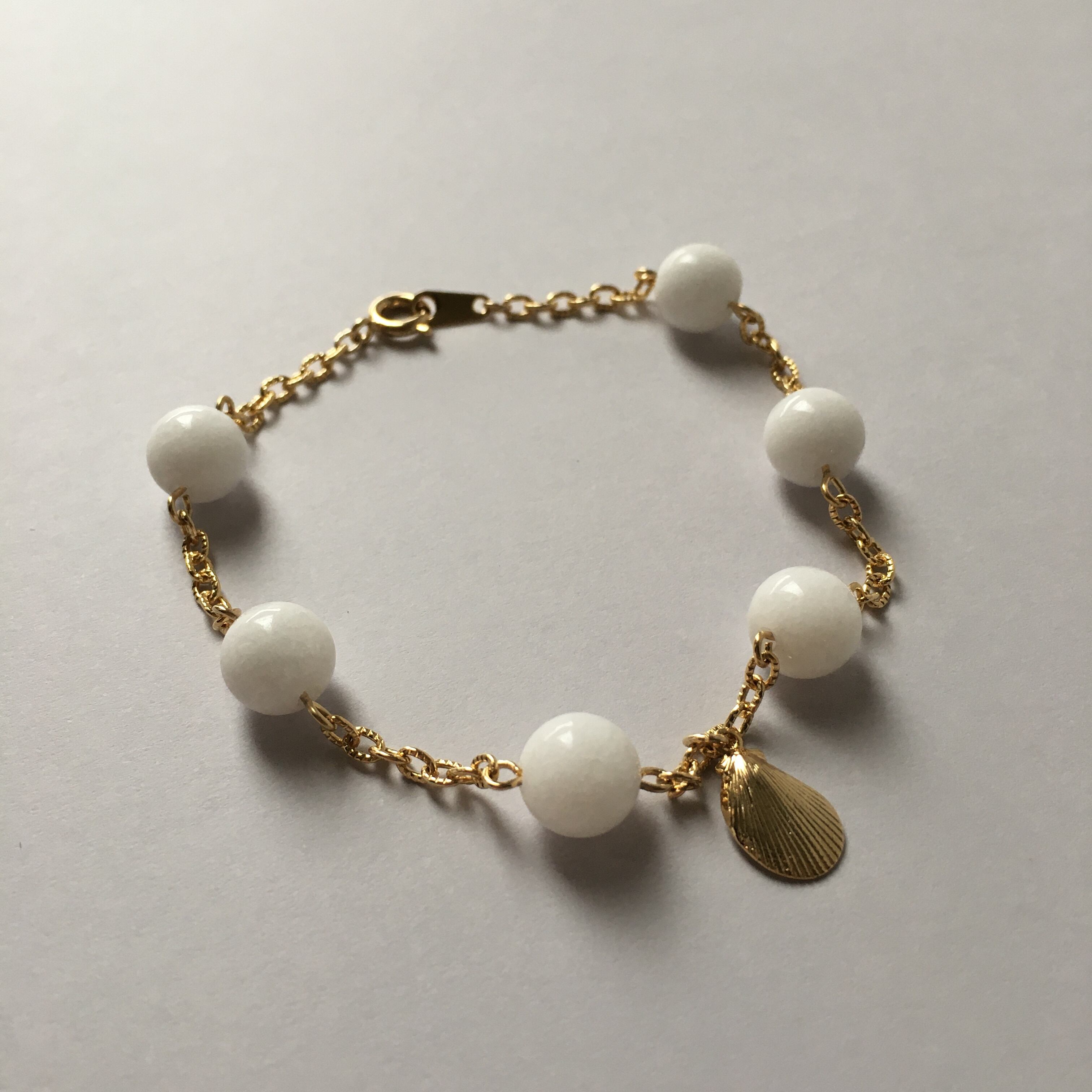 ホワイトクォーツァイトとシェルモチーフを組み合わせたブレスレットです
