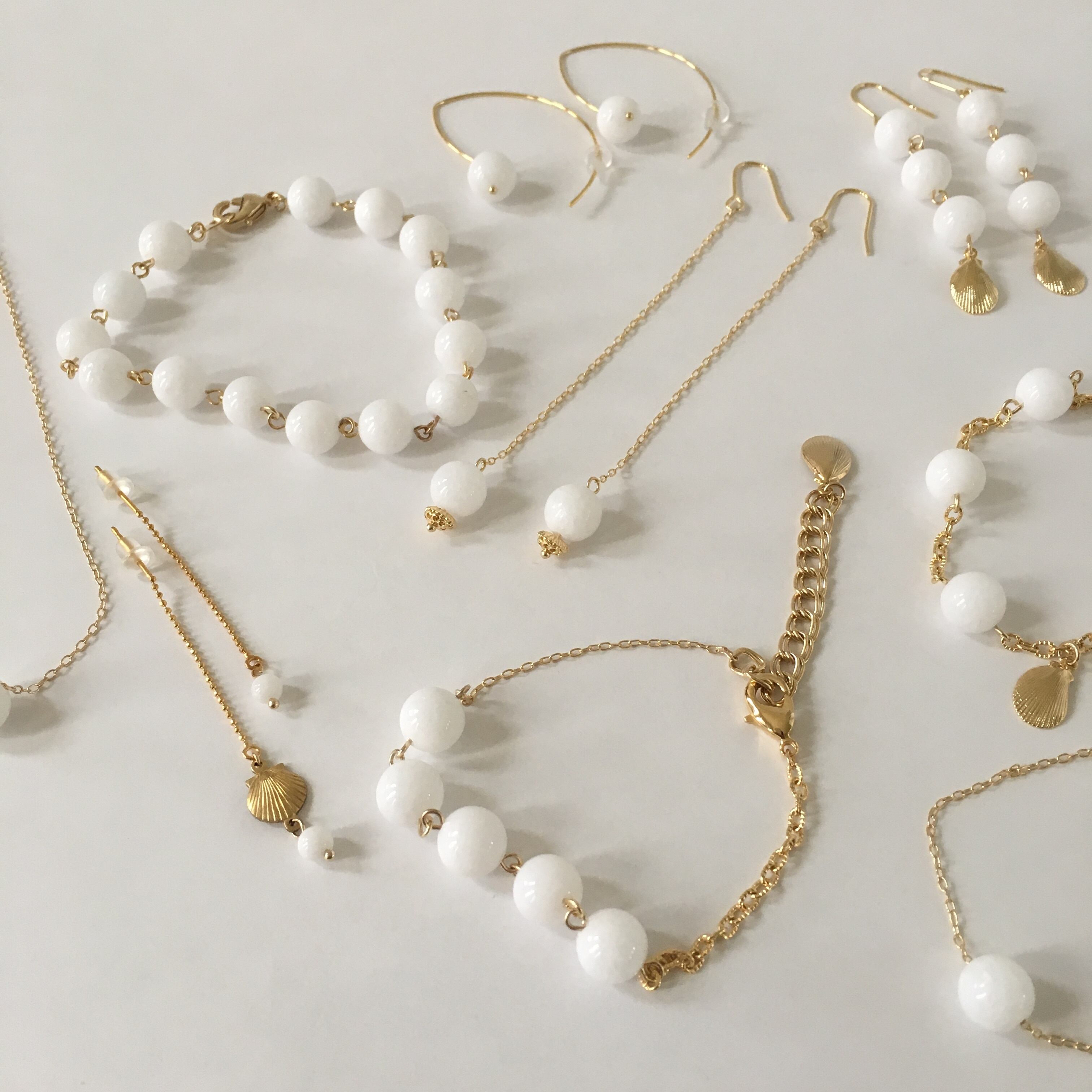 他にもホワイトクォーツァイトのブレスレットやピアスを色々とご用意しております