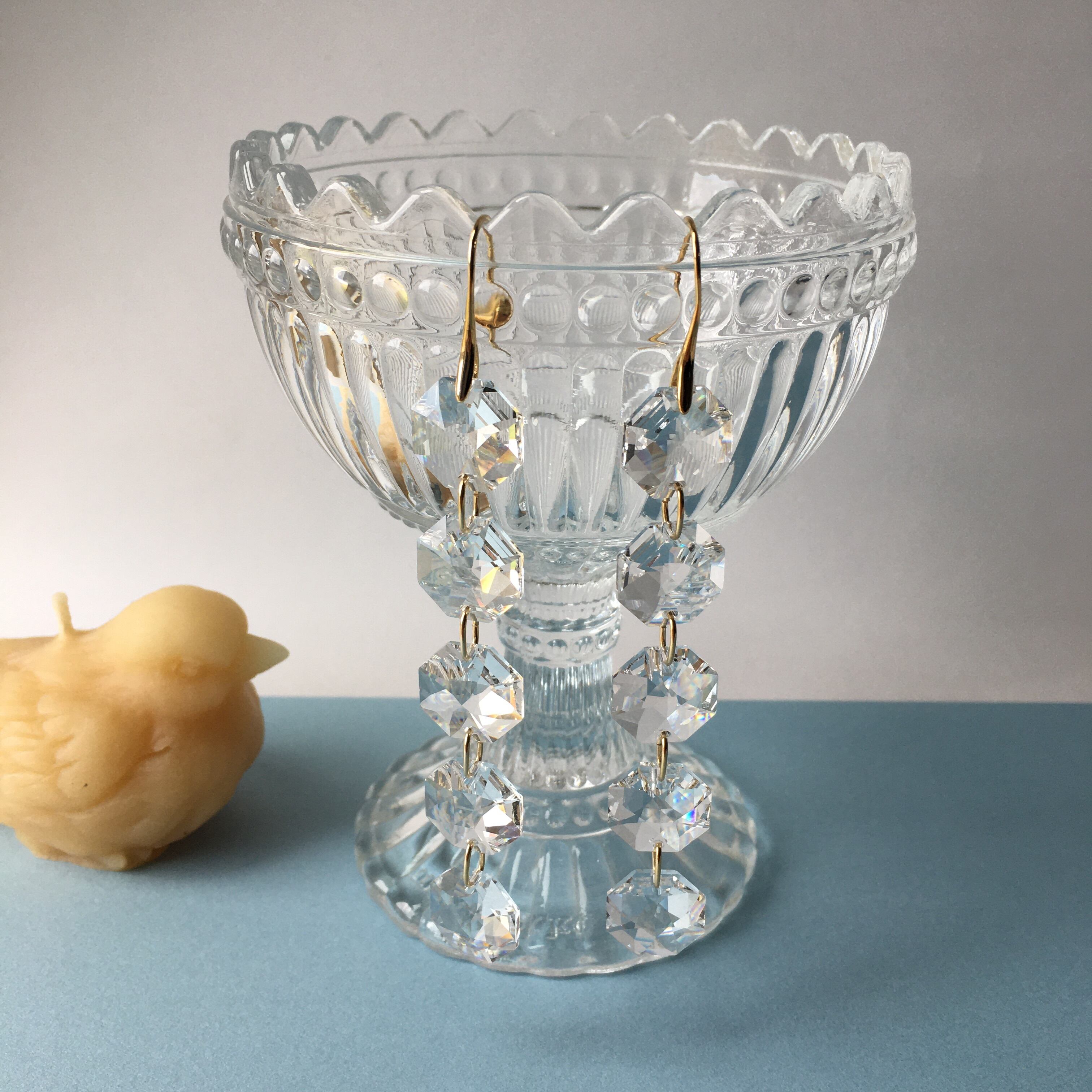 八角形のクリスタルガラスをシンプルに繋ぎ合わせピアスにしました