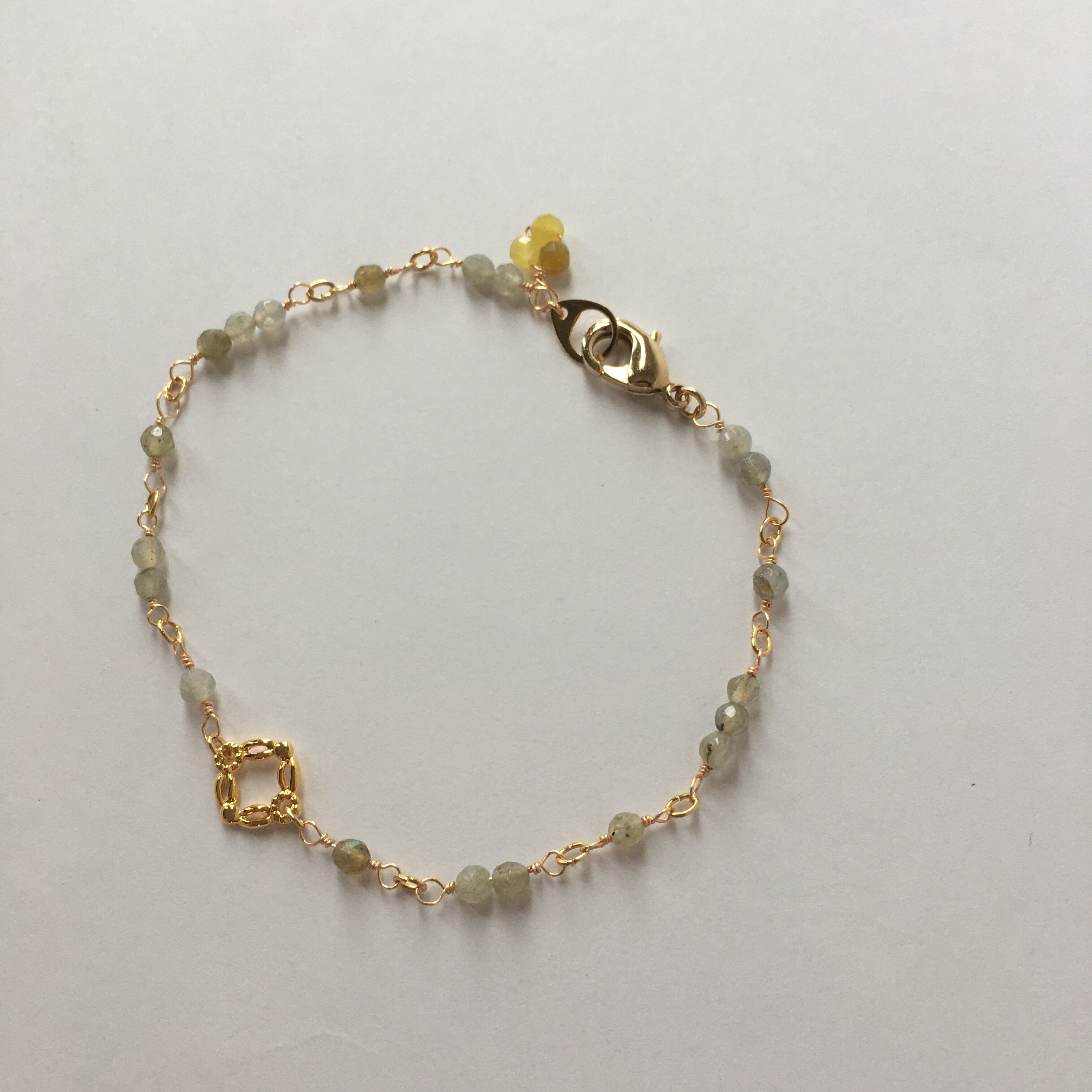虹色に光り輝く石、ラブラドライトを繊細に繋いだ華奢ブレスレットです