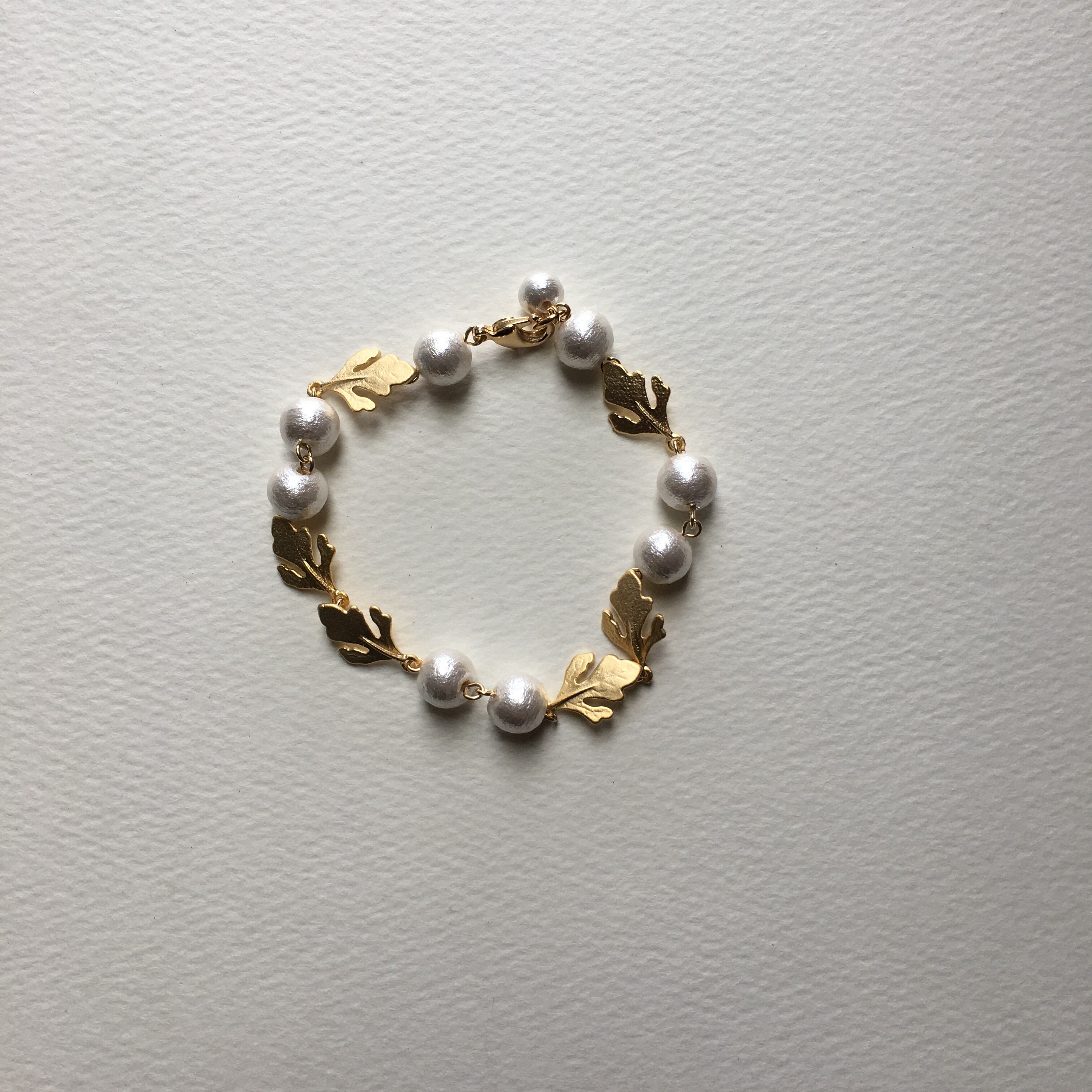 コットンパールとリーフのブレスレットです
