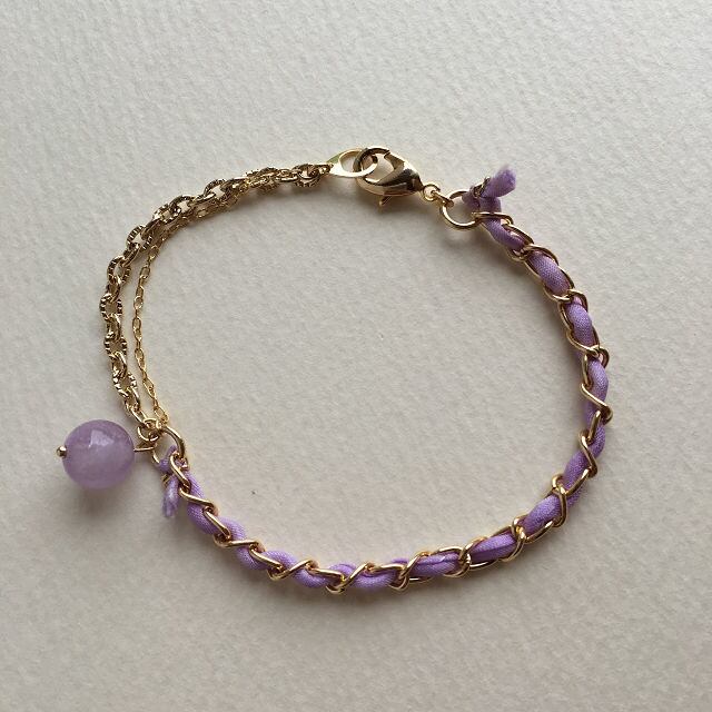 シルクリボンとラベンダーアメジストのブレスレット | Lumiere