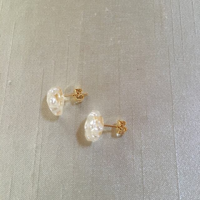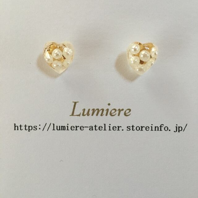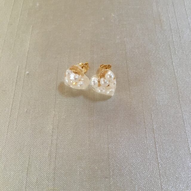 ハート型の樹脂の中にアクリルパールを閉じ込めた可愛いピアスです。