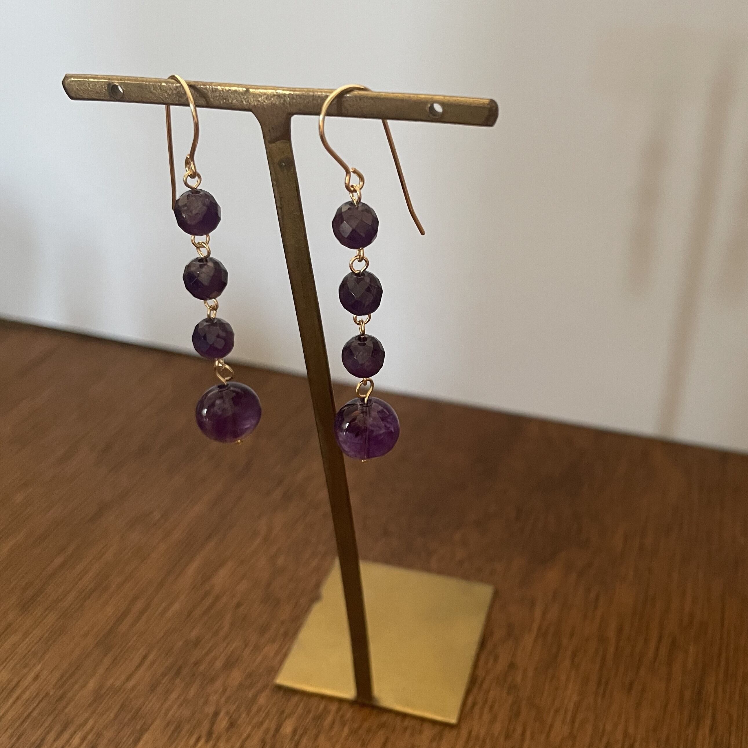 濃い色味のアメジストを組み合わせたシンプルなピアスです