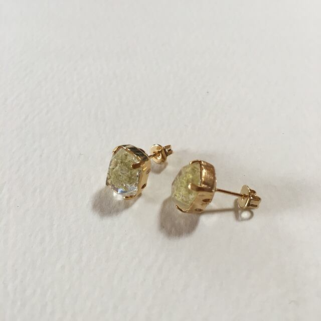 ドライ加工したキャロットフラワーをビジュー型の樹脂の中に閉じ込めたピアスです。